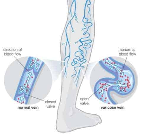 * Weakening of the valves in the veins.